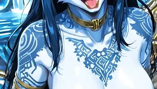 122. Tarian si setan berbulu biru dan pose seksi di air terjun (animasi ai)